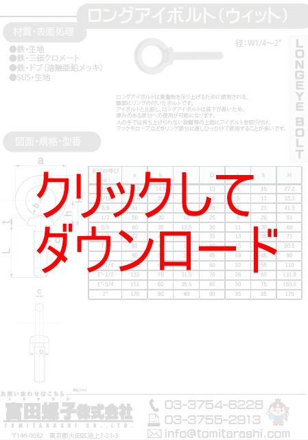 ロングアイボルト【ウィットサイズ】 カタログダウンロードはこちら |