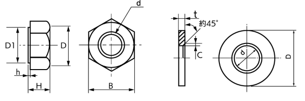 | 呼び径 | d1 | H | B | D | D1 | r | K | h | S |