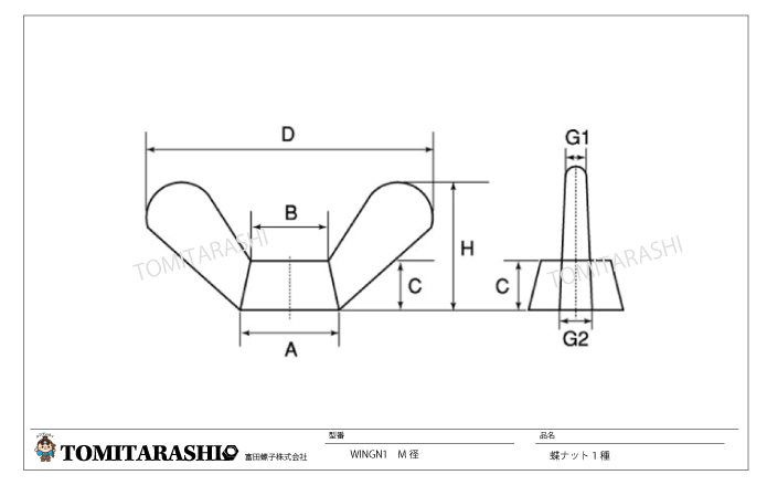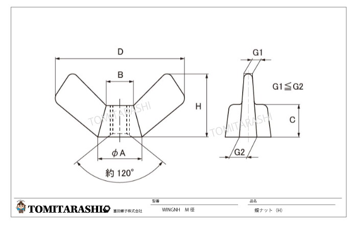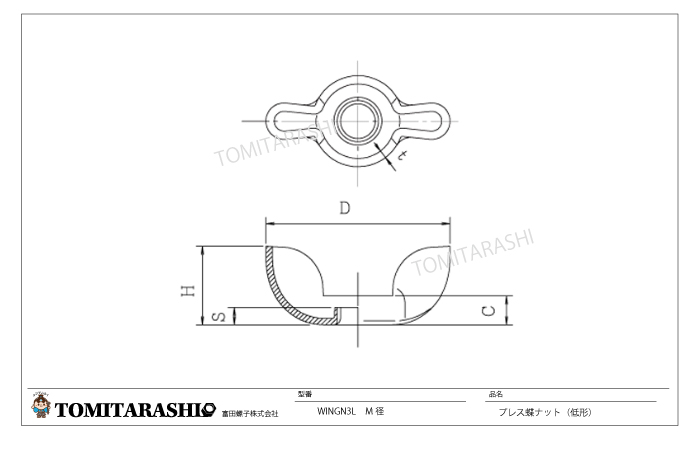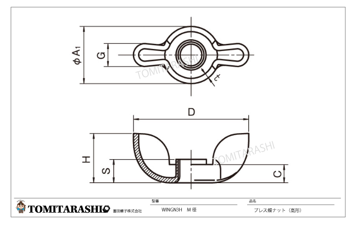 プレス蝶ナット(高形) 規格表・図面